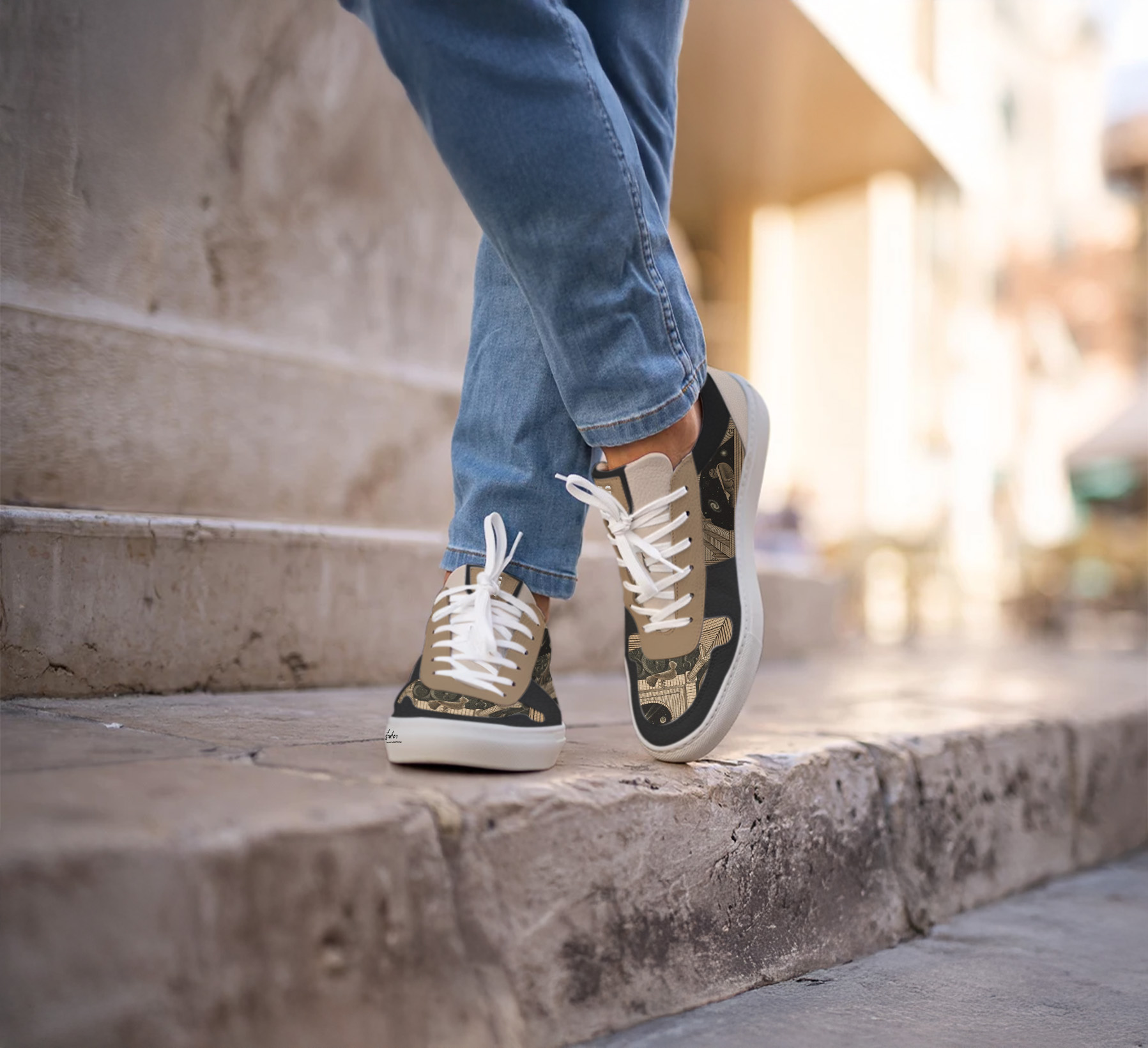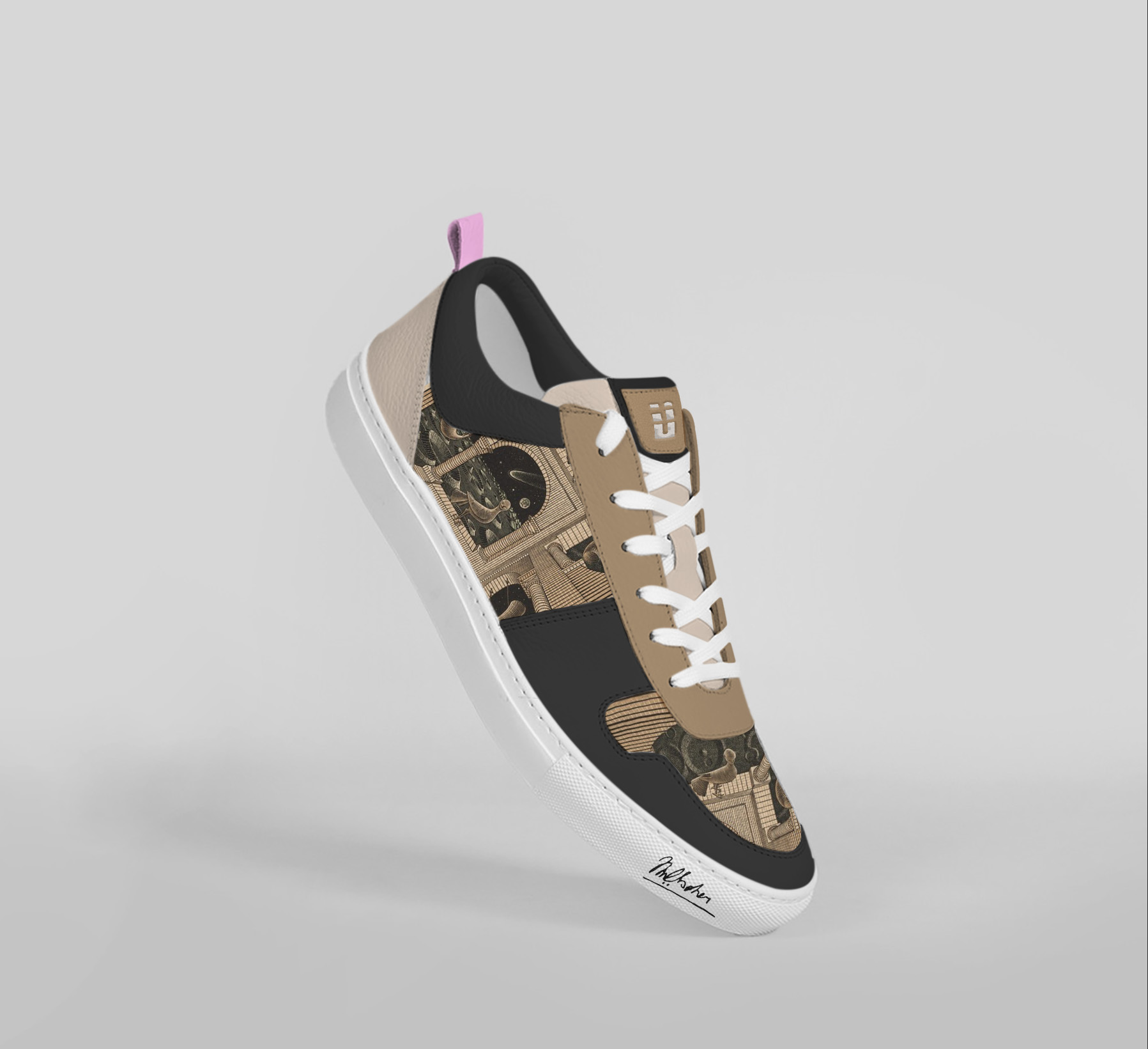 Cette SAÉ consiste en la création d’une marque fictive dont le concept est de créer une gamme de Sneakers (masculin, féminin ou mixtes) dont le design intègre des visuels à forte valeur ajoutée artistique présentant l’univers visuel d’un artiste. La chaussure devient alors une œuvre à porter