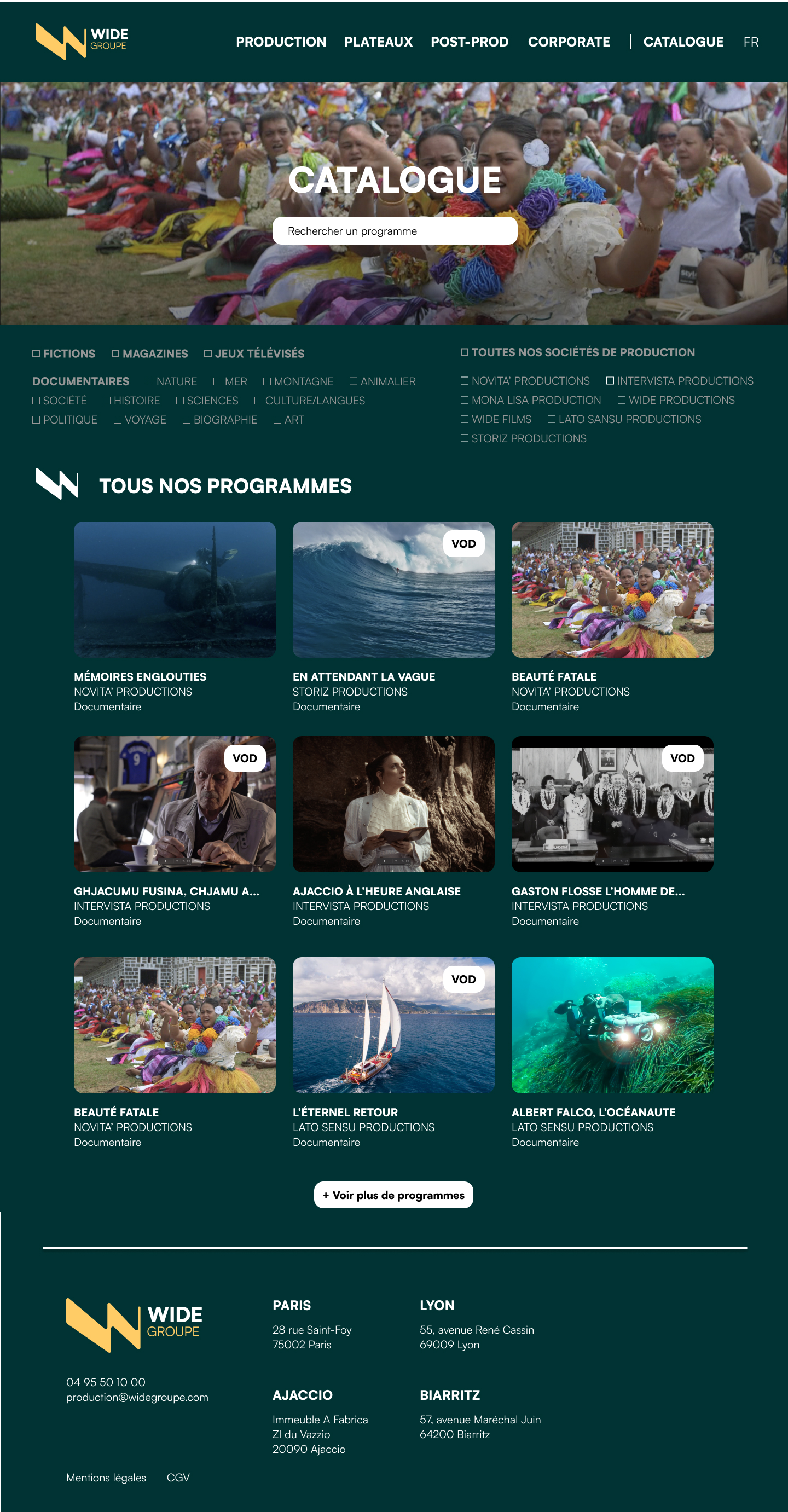 Étant en stage au sein d'Intervista Productions, j'ai été amené à rejoindre le projet de la refonte du site web du groupe Wide.